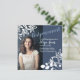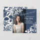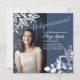 Des changements de date inattendus peuvent survenir. Envoyez à vos invités compréhensifs une carte de report ou de changement de date bleu gris, et faites-leur savoir qu'une invitation officielle suivra ! Un encadrement en dentelle blanche mettra votre photo en valeur. Ces cartes d'annonce de report sont charmantes avec du papier à lettres et des détails de fête coordonnés. Personnalisez facilement cette carte pour une Bat Mitzvah, Quinceanera, un anniversaire d'adolescent, un mariage, une remise de diplôme ou une célébration d'anniversaire de mariage qui doit être reportée.
