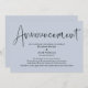 Si vous avez dû interrompre de façon inattendue la planification de votre grande date, voici une option simple mais distinctive. Dans cette pièce, la police d'écriture moderne a été utilisée pour créer un graphique simple qui dit "Faire-part". Utilisez les champs modèles pour ajouter vos détails personnels et faire de ce design moderne votre propre. L'arrière - plan peut être changé en n'importe quelle couleur. Toutes les couches ont été ajoutées séparément et laissées déverrouillées pour vous offrir la plus grande quantité de contrôle de conception. // 130 //