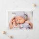 Annoncez l'arrivée de votre bébé avec notre simple faire-part de naissance, avec une photo horizontale de votre petit avec leur prénom superbement recouvert de police de script de calligraphie grise. Vous pouvez personnaliser la faire-part avec le nom complet de votre bébé. Au fond, il y a de l'espace pour une photo supplémentaire, avec des statistiques sur les naissances et un message personnel.