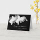 Cette carte de félicitations de mariage présente une superbe photo en noir et blanc d'orchidées sur le devant, ainsi que les mots "Félicitations pour votre jour de mariage". À l'intérieur de la carte se trouve l'un des meilleurs versets de félicitations de mariage que vous trouverez pour les jeunes mariés. Copyright Kathy Henis