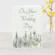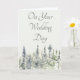 Cette carte de félicitations de mariage pour le couple heureux présente une scène forestière tranquille avec une simple illustration de style aquarelle de grands arbres à feuilles persistantes. Les pins de montagne sont dans des nuances apaisantes de vert et de gris. Un lettrage vert coordonné épelle votre choix de message. Le message sur le devant et à l'intérieur de cette carte est prêt à être personnalisé avec votre propre message ou à créer une carte personnalisée unique pour toute occasion.