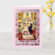 Un couple échangeant des voeux pour le mariage. L'image est bordée d'un arrière - plan de Peonies roses et d'une douce bordure rose. La police dit : "Félicitations." Le message intérieur dit : "C'est le début d'un nouveau commencement. Aimez bien. Vis bien. Vous êtes mari et femme, égaux dans votre mariage. Meilleurs voeux." Vous pouvez modifier le libellé pour utiliser cette conception pour un faire-part de mariage.