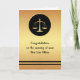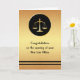 Carte de félicitations pour l'ouverture d'un nouveau bureau de droit. Le design est un faux or, avec une image circulaire d'un jeu d'écailles. Conception parfaite pour l'usage.