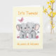 Carte de félicitations pliée pour les bébés jumeaux - ce sont des jumeaux ! Fêtez l'arrivée des nouveaux-nés jumeaux avec cette carte de voeux neutre et personnalisable ! L'avant comporte deux petits éléphants doux et le message "It's Twins", avec espace pour personnaliser la carte avec les noms des jumeaux - il est également possible de laisser cette partie vide. Convient à tous les genres. À l'intérieur, vous trouverez un message sincère que vous pouvez customiser au besoin. Parfait pour accueillir les nouveaux-nés jumeaux, cette carte est un joli gardien pour les nouveaux parents fiers. Idéal pour les baby showers, la naissance de jumeaux carte de félicitations, ou envoyer des voeux chaleureux à une famille en pleine croissance. Conçu par Best Baby Gifts - donné avec amour.