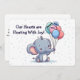 Célébrez la joie d'une nouvelle arrivée avec cette adorable carte d'accueil pour bébés, avec un petit éléphant doux tenant des ballons pastel et entouré de points de confettis. Le message "Nos coeurs flottent avec joie" donne le ton d’un accueil chaleureux et chaleureux, tandis que le front est personnalisé avec le nom du bébé pour une touche spéciale. Parfait pour les baby showers, les nouveaux parents, ou l'accueil d'un nouveau-né précieux, cette carte fantaisiste est vouée à devenir un souvenir.
