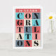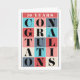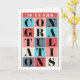Il s'agit d'une carte de 30e anniversaire de l'employé avec le mot "FÉLICITATIONS" en noir, et avec chaque lettre dans un carré séparé dans une grille horizontale 3 x verticale 5. Les couleurs sont turquoise, bleue, pêche foncée et claire, beige. En haut de la conception est le nombre d'années en texte blanc fixé contre un arrière - plan de pêche foncé. Conception par NATALIE KINNEAR