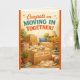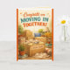 Personnalisez avec votre propre message, tel que : « Que votre maison soit remplie d'amour, de rires et de plats à emporter les soirs de déballage », « À la construction d'une vie — et d'un canapé sur lequel vous êtes tous les deux d'accord », ou « Chaque boîte déballée est un nouveau souvenir qui attend de se réaliser. »