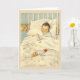 Carte de félicitations rétro/vintage pour bébé. Adorable bébé blotti dans son lit. Carte parfaite pour accueillir un nouveau-né ou pour célébrer un anniversaire !