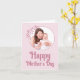 Célébrez Maman avec cette carte de fête des Mères en forme de collage photo floral rose, conçue pour mettre en valeur vos moments de famille préférés. La couverture présente une photo carrée encadrée de fleurs douces, tandis que l'intérieur contient un collage personnalisé de trois photos (deux verticales et une horizontale) accompagnées de votre message personnalisé. Un charmant design rétro « Joyeuse fête des Mères » décore le dos pour un supplément de douceur. Parfait pour les nouvelles mamans, les premières célébrations de la fête des Mères ou toute personne qui mérite un souvenir sincère. Avec son thème floral rose et blanc, cette carte est à la fois moderne et intemporelle — une belle façon de dire « Je t'aime, Maman ».