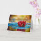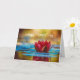 Carte de fête des mères avec une photographie d'un étang avec une belle fleur de lotus rouge qui dépasse sur le dessus.