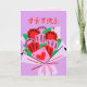 Carte de la fête des mères chinoise avec un bouquet de fleurs, et un message émouvant dans la carte.