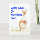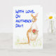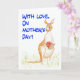 Une carte de fête des mères avec un kangourou peint à la main avec un bébé dans sa poche, lui donnant un bouquet de fleurs pour la fête des mères. Videz à l'intérieur pour votre propre message.