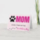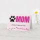 Carte de fête des mères des animaux de compagnie. Une carte pliée avec un joli arrière - plan à carreaux rose clair avec un mignon empreinte de patte noir à côté du mot 'MOM' qui est imprimé en rose vif. ' Il y a un espace pour le(s) nom(s) d'animal(s) sous le mot 'MOM'. Il y a des empreintes de pattes qui marchent le long du bas de la carte, et les mots "Fête des mères" qui complètent le devant de la carte. A l'intérieur, un message simple "Bonne fête des mères". Les noms des animaux de compagnie sont personnalisables ainsi que le message dans la carte. Une belle carte personnalisée pour maman de ses fourrures-bébés lors de sa journée spéciale.