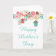 Une belle carte de fête des mères avec des maisons d'oiseaux roses et vertes