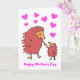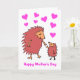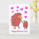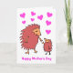 Dessin animé mignon d'une mère et d'un bébé hérisson qui tendent la main l'un vers l'autre pour la fête des mères. Le message indique 'Joyeuse fête des mères'. La carte a un fond blanc avec des cœurs, mais il est facile de le modifier pour une couleur différente. Personnalisez facilement cette carte en modifiant le texte du modèle sur le devant et à l'intérieur. Merci de regarder mes créations !