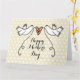 Une illustration de 2 belles colombes tenant un ruban flottant avec un cœur d'amour attaché.