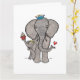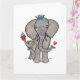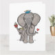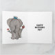 Une illustration douce d'un éléphant et d'un bébé. Le bébé tient un gâteau covered de paillettes et ils portent tous les deux des couronnes colorées.