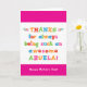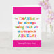 Tu appelles ta grand-mère Abuela, pas grand-mère. (Abuela signifie grand-mère en espagnol.) Imaginez à quel point Abuela sera excité de recevoir une carte de fête des mères qui lui sera adressée en particulier ! Votre abuela va aussi adorer le design amusant et coloré de cette carte qui dit "Merci d'être toujours une Abuela si géniale! Bonne fête des mères !" Rendre cette carte personnalisable ! Cliquez sur "Edit Design", "Inside Bottom/Right : Text & Images", "Text" et "Add text" pour écrire votre propre message personnalisé à Abuela à l'intérieur !