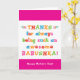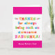 Tu appelles ta grand-mère Babushka, pas grand-mère. (Babushka signifie grand-mère en russe.) Imaginez combien Babushka sera excitée de recevoir une carte de fête des mères qui lui sera adressée en particulier ! Votre babushka aimera aussi le design amusant et coloré de cette carte qui dit "Merci d'être toujours une Babushka si géniale! Bonne fête des mères !" Rendre cette carte personnalisable ! Cliquez sur "Edit Design", "Inside Bottom/Right : Text & Images", "Text" et "Add text" pour écrire votre propre message personnalisé à Babushka à l'intérieur !