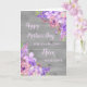 Carte de Fête des Mères pour nièce avec fleurs aquarelles violettes vintage et motif de bois rustique et vers sincères.