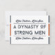 Carte de Fête des pères Son, Typographie Strong Funny Son Card Cartes de jour pour Fils : Cette carte de fête des pères fils en rouge et bleu avec la citation "Comme père, comme fils. Une dynastie d'hommes forts" est parfait pour votre fils en fête des pères. Cette typographie moderne son drôle de carte de fête des pères est design pour rappeler à votre fils d'où vient sa force, en ce beau jour qui honore tous les pères du monde entier. Bonne fête des pères !