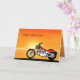 Une moto semblable à une Harley debout au bord de la mer avec un glorieux coucher de soleil orange. Une grande carte pour tous ceux qui aiment le vélo et les motos.Voir toute la gamme de cartes pour les âges et les relations dans mon magasin. Toutes les oeuvres d'art copyright Norma Cornes