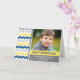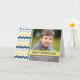 Fête des pères carte photo pour papa dans le moderne bleu foncé, jaune, gris et blanc rétro chevron rayures motif. Éclairer la journée de papa cette fête des pères avec cette carte de voeux personnalisable et réfléchie.