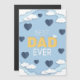 Bonne Fête des pères design mignon, meilleur papa jamais parmi les nuages et les coeurs bleus dans le ciel, 3d papier découpé dessin animé