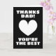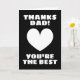 Carte de fête des pères - Merci papa tu es le meilleur. Carte de vœux simple avec un grand cœur d'amour. Faites-la expédier directement de Zazzle à l'adresse de votre papa. Ajoutez votre propre message à l'intérieur. Disponible en différentes tailles. Cartes cool pour lui.