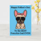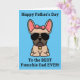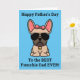 Frenchies, montrez à votre père un peu d’amour pour la fête de ce Père avec une carte personnalisée juste de vous. Le message au recto de la carte dit : "Bonne fête des pères au meilleur papa français !" Le message intérieur dit : "Je t’aime plus que les promenades, Joyeuse Fête des Pères". Le dessin présente une jolie illustration de dessin animé d'un taureau français de couleur fawn féminin portant un arc et un collier roses. Police et couleur arrière - plan et être modifié en sélectionnant "Cliquez pour customiser plus loin".