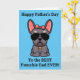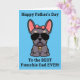 Frenchies, montrez à votre père un peu d’amour pour la fête de ce Père avec une carte personnalisée juste de vous. Le message au recto de la carte dit : "Bonne fête des pères au meilleur papa français !" Le message intérieur dit : "Je t’aime plus que les promenades, Joyeuse Fête des Pères". Le dessin présente un joli dessin animé illustrant un bulldog français couleur lilas et bronzée portant un arc et un collier roses. Police et couleur arrière - plan et être modifié en sélectionnant "Cliquez pour customiser plus loin".