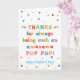 Tu appelles ton grand-père Pop Pop, pas grand-père. Imaginez à quel point Pop Pop sera excité de recevoir une carte de Fête des pères qui lui sera adressée spécialement ! Votre pop pop aussi va adorer le design brillant et coloré de cette carte de Fête des pères qui dit "Merci d'être toujours une pop pop si géniale! Bonne Fête des pères !" Rendre cette carte personnalisable ! Cliquez sur "Edit Design", "Inside Bottom/Right : Text & Images", "Text" et "Add text" pour écrire votre propre message personnalisé à Pop Pop Pop à l'intérieur !