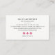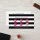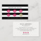 Lumineux et modernes dans les tons noir, blanc immaculé et rose fushia, nos cartes de visite à deux côtés ont un punch de fidélité d'un côté et vos coordonnées complètes, y compris les médias sociaux, de l'autre. Comprend cinq illustrations de baiser à lèvres rose avec un sixième en faux or pour le service à rabais ou l'article gratuit de votre client. Personnalisez avec vos termes de fidélité désirés en dessous.