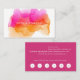 Les cartes de visite d'aquarelle chic présentent votre nom ou nom de société sur une illustration de l'encre blooming, dans des teintes lumineuses et colorées de coucher de soleil de rose fuchsia et de verge d'or. Ajoutez vos coordonnées complètes à l'arrière en blanc sur magenta. Inclut votre offre de fidélité personnalisée (présentée avec "profitez de 20% de rabais sur n'importe quel service après cinq visites"), et six punchouts.