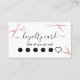 Design moderne de carte de fidélité coiffeuse avec ciseaux d'or faux rose, arrière - plan blanc et police de calligraphie élégante.