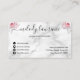 Carte de fidélité moderne et élégante pour coiffeurs avec ciseaux d'or faux cuivre rose, roses roses roses et blanches, arrière - plan de marbre blanc et police de calligraphie élégante.
