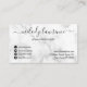 Carte de fidélité moderne et élégante pour coiffeurs avec ciseaux d'or rose en faux cuivre, arrière - plan en marbre blanc et police de calligraphie élégante.