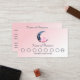 Cette élégante carte de fidélité Lotus flower est décorée d'une fleur de lotus rose aquarelle, d'une lune bleu croissant et de lampes à cordes bleues, le tout sur un arrière - plan de dégradé rose pâle. Idéal pour toute petite entreprise comme Reiki, aromathérapie, physiothérapie, ostéopathe, chiropraticien, massothérapeute et bien plus encore. Ajoutez les détails du schéma de fidélité de votre entreprise pour une carte de fidélité moderne et élégante.