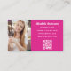 Un arrière - plan rose chaud féminin, texte blanc Sur le devant : Ajoutez-vous réduction. Retour : Personnalisez et ajoutez votre photo, nom, titre, numéro de téléphone, courrier, adresse du site, code qr à votre site Web.