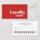 Modèle de carte de fidélité simple et moderne pour salon de beauté ou de santé. Design élégant avec arrière - plan rouge et polices en gras blanc. Outil marketing parfait pour récompenser vos meilleurs clients.