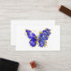 Bijoux, bleu, saphir, papillon aux fleurs pétillantes avec aile décorée de bleu, fleurs précieuses avec feuilles d'or sur arrière - plan blanc.
