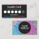 Étincelle et brille avec ce carte de visite époustouflant ! Conçue pour la coiffeuse moderne, cette carte est dotée d'un arrière - plan captivant de parties scintillant arc-en-ciel. Le cercle noir chic ajoute une touche d'élégance, mettant en valeur votre nom et votre profession de manière élégante. Parfait pour faire une première impression mémorable, il est sûr d'attirer de nouveaux clients et de consolider votre marque. La carte de fidélité qui l'accompagne récompense les clients qui retournent avec une remise de 20% après 5 visites, favorisant des relations à long terme. Améliorez l'image de votre salon aujourd'hui grâce à ce design professionnel et attrayant.