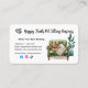 Récompensez vos clients fidèles dans le style grâce à cette carte de fidélité Pet Sitter magnifiquement conçue, idéale pour les marcheurs de chiens, les chats et les professionnels de soins des animaux de compagnie! Doté d'une illustration moderne et élégante d'aquarelle d'un chien et de chats sur un canapé, cette carte de fidélité est la façon idéale de remercier vos clients et d'encourager les réservations répétées. Que vous soyez un gardien de chiens professionnel, un marcheur à temps partiel ou une entreprise de soins aux animaux de compagnie de caractère, cette carte de fidélité ajoute une touche personnelle à vos interactions avec vos clients. Remettez-en une après chaque visite, tamponnez ou marquez chaque séance, et offrez un service gratuit ou un régal spécial après un nombre déterminé de visites.