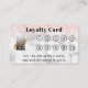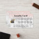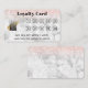 Ajoutez votre logo à cette jolie carte de fidélité. Sur un arrière - plan en marbre blanc et gris avec parties scintillant rose en or au sommet. Cela a dix cercles pour représenter dix visites de votre client. Vous personnaliserez le message en bas, en indiquant votre offre.