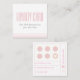 Modern style blush pink and white background with script typography with social handle, email, phone number and website option . Perfect elegant, minimalist refer-a-friend loyalty card for nail tech, makeup artist, hair stylist, Coaches & consultants. Get discount on 6th visit loyal card.