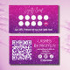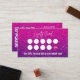 Montrez le style de votre entreprise avec cette carte de fidélité magenta et violet parties scintillant, conçue pour captiver et retenir vos clients. L'arrière - plan de parties scintillant ombré luxueux s'écoule du magenta vibrant au violet profond, créant une esthétique étonnante et élégante. Doté de dix cercles blancs pour suivre les achats ou les rendez-vous, cette carte de fidélité est parfaite pour les techniciens de fouilles, les salons de beauté et les boutiques qui cherchent à stimuler le fiançailles client. Pour plus de commodité, incluez un code QR scannable pour diriger les clients vers votre page de réservation, profils de médias sociaux ou site Web. Cette carte de fidélité allie fonctionnalité et design éblouissant, ce qui en fait un complément exceptionnel aux documents marketing de votre marque. Qu'elle soit affichée à la réception ou remise directement à vos clients, cette carte ajoute une touche de sophistication tout en encourageant les visites répétées. Son design magenta et violet étonnant assurera à votre entreprise une expérience professionnelle et mémorable. Améliorez l’image de votre marque avec cette carte de fidélité tendance, fonctionnelle et élégante.
