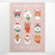 Cette illustration mignonne et réconfortante présente diverses races de chiens, chacun vêtu de tenues de vacances confortables comme des écharpes et des chapeaux. Le fond rose clair complète les visages adorables, apportant joie et chaleur à la saison des fêtes.