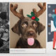 Carte De Fin D'année Trois Volets Couple gay Noël Chien et arbre personnalisés