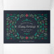 Ce design présente une couronne festive faite de houx, de baies et de divers feuillages d'hiver. Le vert audacieux et les accents rouges ressortent sur un fond sombre, entourant un message sincère de bonne humeur et de vœux pour une merveilleuse année nouvelle.