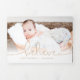 Elégant design classique de carte de vacances avec vos photos et le mot "croire" dans une police de script or.